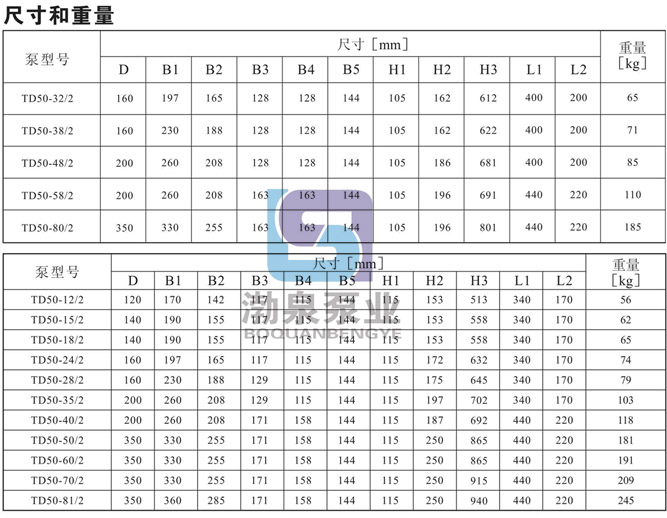 產(chǎn)品介紹 TD50-35/2生活熱水循環(huán)泵采用電機(jī)與泵可分離式結(jié)構(gòu),泵部分設(shè)計(jì)為可拉出形式。所有的該類產(chǎn)品都配有標(biāo)準(zhǔn)電機(jī)和機(jī)械密封。電機(jī)為全封閉、風(fēng)冷式標(biāo)準(zhǔn)電機(jī)。其主要尺寸符合JB/T8680標(biāo)準(zhǔn)。 產(chǎn)品泵體相當(dāng)于一段管路。在泵進(jìn)行維修時(shí),可以用盲法蘭將泵體封堵,從而不影響系統(tǒng)的正常運(yùn)行。 產(chǎn)品的聯(lián)接法蘭尺寸符合GB/T17241.6或IS07005-2/DIN2501標(biāo)準(zhǔn)中PN16時(shí)的有關(guān)規(guī)定。 產(chǎn)品的進(jìn)出口直徑符合有關(guān)標(biāo)準(zhǔn)尺寸。 產(chǎn)品的泵頭是聯(lián)接電機(jī)和泵的裝置。其與泵體之間的密封件采用“〇”形圈。 TD50-35/2生活熱水循環(huán)泵配有標(biāo)準(zhǔn)電機(jī)和機(jī)械密封。此類管道泵產(chǎn)品的結(jié)構(gòu)與相近類型產(chǎn)品相比,更不易受到泵送液體中雜質(zhì)的影響。 產(chǎn)品設(shè)計(jì)為頂部可拉出的拆裝形式,其可以在不影響管路系統(tǒng)的情況下對(duì)泵進(jìn)行維護(hù)。 應(yīng)用 產(chǎn)品適宜在清潔、稀薄、非侵蝕、非易爆易燃,且不含有任何可能對(duì)泵造成機(jī)械或化學(xué)損害的固體顆粒和纖維的液體中使用。具體對(duì)液體要求及應(yīng)用如下;而在液體粘稠或密度較大情況下使用時(shí)會(huì)造成泵特性曲線的下降和能耗的增加。 液體溫度:-15℃~110℃ 系統(tǒng)最高壓力:常規(guī)型為PN12巴;特殊型為PN16巴。 TD50-35/2生活熱水循環(huán)泵產(chǎn)品在用于輸送水時(shí),其可以用于生活用水、工業(yè)用水、冷卻系統(tǒng)用水和區(qū)域供熱系統(tǒng)的冷、熱用水。TD離心泵產(chǎn)品可以在以下位置使用: ·混合環(huán)路中的泵 ·鍋爐混流泵 ·燃?xì)饫鋬鰴C(jī)泵 ·部分流量過濾器泵 ·定壓系統(tǒng)用泵 ·生活熱水循環(huán) TD50-35/2生活熱水循環(huán)泵產(chǎn)品用于工業(yè)方面。如在化工、制藥、食品加工等行業(yè)。可以用于: ·原料的輸送 ·系統(tǒng)增壓 ·混合環(huán)路循環(huán)泵 ![]() ![]() ![]() ![]() 因產(chǎn)品生產(chǎn)批次、型號(hào)不同,產(chǎn)品圖片及安裝尺寸僅供參考,詳情可聯(lián)系我們的銷售人員了解更多TD50-35/2生活熱水循環(huán)泵相關(guān)信息!