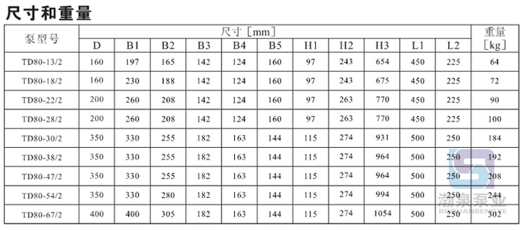 TD80-30/2 立式增壓循環泵采用電機與泵可分離式結構,泵部分設計為可拉出形式。所有的該類產品都配有標準電機和機械密封。電機為全封閉、風冷式標準電機。其主要尺寸符合JB/T8680標準。