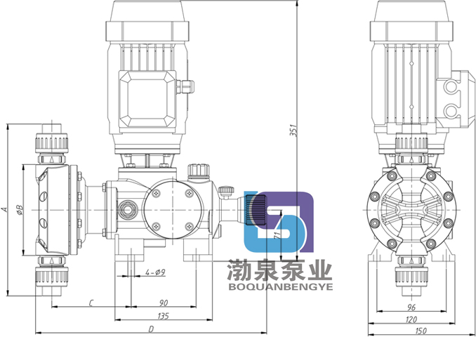 產(chǎn)品介紹 KD120/0.5 304不銹鋼隔膜計量泵產(chǎn)品介紹 流量范圍:0-180 L/H 壓力范圍: 0-0.8 MPA 電機功率: 180W,220V / 380V / 420V , 50/60Hz 驅(qū)動系統(tǒng): 兩相、三相標(biāo)準(zhǔn)電機或防爆電機 流量控制: 手動控制, 防護(hù)等級: IP55 材料 泵頭: SUS304, SUS316, PVC, PTFE 隔膜: PTFE 單向閥: SUS304, SUS316, PVC, PTFE 閥球: ZrO2, SUS304, SUS316, 陶瓷 工作條件 環(huán)境溫度: -30℃ --- 80℃ 計量泵技術(shù)參數(shù)