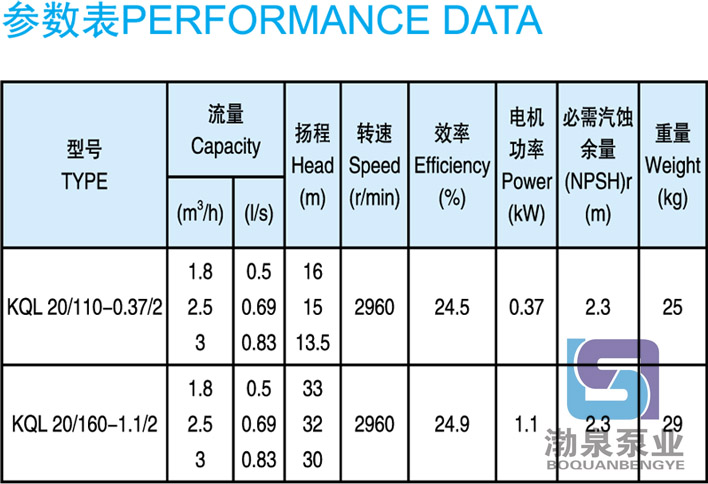 KQL20/110-0.37/2 立式管道離心泵結構緊湊、合理,泵與電機直接連接,外形美觀,占地面積小效率高,閉式鑄鐵葉輪,軸承配置合理,葉輪懸臂短,機泵軸完全同心,泵運行平穩、可靠,噪音低壽命長,強制環流沖洗機械密封,免保養、無滲漏。