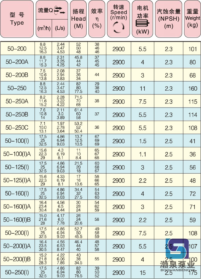 產(chǎn)品介紹 ISW50-125(I)A 臥式化工管道離心泵是采用IS型離心泵之性能參數(shù),在一般臥式泵的基礎(chǔ)上進(jìn)行巧妙組合設(shè)計(jì)而成,同時(shí)根據(jù)使用溫度、介質(zhì)等不同在ISW型管道泵基礎(chǔ)上派生出適用熱水泵、高溫、耐腐蝕化工泵、油泵。該系列產(chǎn)品具有高效節(jié)能、噪音低、性能可靠等優(yōu)點(diǎn),符合JB/T53058-93的標(biāo)準(zhǔn)要求,產(chǎn)品按ISO2858標(biāo)準(zhǔn)設(shè)計(jì)制造。具有效率高、流量及揚(yáng)程范圍大、結(jié)構(gòu)合理、成本低、壽命長(zhǎng)、占地面積小、安裝維修方便等特點(diǎn)。是替代IS、DL等常規(guī)產(chǎn)品的新離心泵,特別適用于高層建筑的給排水、噴灌、冶金、市政、礦山水處理排污,食品、化工、空調(diào)及其他行業(yè)輸送水、化學(xué)介質(zhì)及其他液體。 ISW50-125(I)A 臥式化工管道離心泵流量范圍15~1200m3 /h,分基本型、擴(kuò)流型、A、B、C切割型等250多種規(guī)格,并根據(jù)流體介質(zhì)和溫度不同又派生出清水泵、熱水泵、化工泵、防爆油泵、防爆化工泵等系列產(chǎn)品。 ISW50-125(I)A 臥式化工管道離心泵主要用途 1、ISW臥式清水泵供輸送清水及物理化學(xué)性質(zhì)類似于清水的其它液體之用,適用于工業(yè)和城市給排水、高層建筑增壓送水、園林噴灌、消防增壓、遠(yuǎn)距離輸送、暖通制冷循環(huán)、浴室等冷暖水循環(huán)增壓及設(shè)備配套,使用溫度T≤80℃。 2、ISWR臥式熱水泵,廣泛適用于:冶金、化工、紡織、造紙以及賓館飯店等鍋爐熱水增壓循環(huán)輸送及城市采暖系統(tǒng),ISWR型使用溫度T≤120℃。 3、ISWH臥式化工泵,供輸送不含固體顆粒,具有腐蝕性。粘度類似于水的液體,適用于石油、化工、冶金、電力、造紙、食品、制藥和合成纖維等部門,使用溫度為-20℃~+120℃。 4、ISWY臥式管道油泵,供輸送汽油、煤油、柴油等油類產(chǎn)品或易燃、易爆液體,被輸送介質(zhì)溫度為-20℃~120℃。 5、ISWHY型臥式不銹鋼防爆化工離心泵,適用于輸送易燃性化工液體。 6、ISWD臥式低轉(zhuǎn)速泵,適應(yīng)要求環(huán)境噪聲很低的場(chǎng)合,使用溫度T≤120℃。 ISW50-125(I)A 臥式化工管道離心泵工作條件 1.吸入壓力≤1.0MPa,或泵系統(tǒng)最高工作壓力≤1.6MPa,即吸入口壓力+泵揚(yáng)程≤1.6MPa、泵靜壓試驗(yàn)壓力為≤2.5MPa,訂貨時(shí)請(qǐng)注明系統(tǒng)工作壓力。泵系統(tǒng)工作壓力大于1.6MPa時(shí)應(yīng)在訂貨時(shí)另行提出,以便在制造時(shí)泵的過流部分和聯(lián)接部分采用鑄鋼材料。 2.環(huán)境溫度<40℃,相對(duì)濕度<40%。 3.所輸送介質(zhì)中固體顆粒體積含量不超過單位體積的0.1,粒度<0.2mm。 注:如果用介質(zhì)為帶有細(xì)小顆粒,請(qǐng)?jiān)谟嗀洉r(shí)說明,以便廠家采用耐磨式機(jī)械密封。 ISW50-125(I)A 臥式化工管道離心泵產(chǎn)品特點(diǎn) 運(yùn)行平穩(wěn):泵軸的絕對(duì)同心度及葉輪優(yōu)異的動(dòng)靜平衡,保證平穩(wěn)運(yùn)行,絕無振動(dòng)。 滴水不漏:不同材質(zhì)的硬質(zhì)合金密封,保證了不同介質(zhì)輸送均無泄漏。 噪音低:兩個(gè)低噪音軸承支撐下的水泵,運(yùn)轉(zhuǎn)平穩(wěn),除電機(jī)微弱聲響,基本無噪音。 故障率低:結(jié)構(gòu)簡(jiǎn)單合理,關(guān)鍵部分采用品質(zhì)配套,整機(jī)無故障工作時(shí)間大大提高。 維修方便:更換密封、軸承,簡(jiǎn)易方便。 占地更省:出口可向左、向右、向上三個(gè)方向,便于管道布置安裝,節(jié)省空間。 ![]() ![]() ![]() 因產(chǎn)品生產(chǎn)批次、型號(hào)不同,產(chǎn)品圖片及安裝尺寸僅供參考,詳情可聯(lián)系我們的銷售人員了解更多ISW50-125(I)A 臥式化工管道離心泵相關(guān)信息!