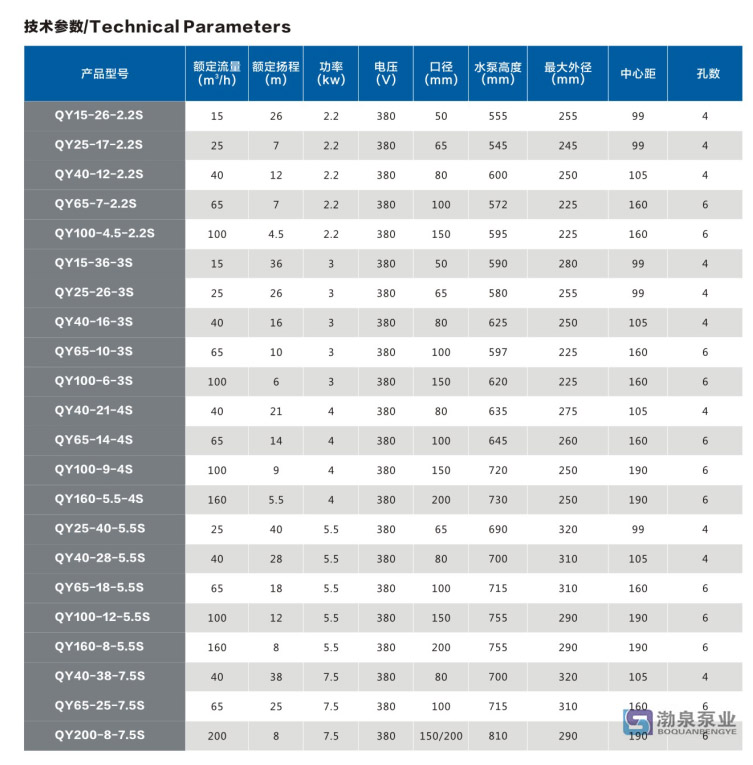 產品介紹 產品概述/Product Overview QY160-11-7.5S 不銹鋼園林排灌潛水電泵外殼及過流部件采用不銹鋼精密鑄造,具有衛生、環保、耐腐蝕、外觀精美等特點。 產要特點:/Main Features 1、采用雙端面、單端面雙道機封為動密封,采用氟橡膠.0型圈為靜密封,密封更可靠。 2、采用F級絕緣電機,底部采用錐形軸承設計,增加水泵運轉的可靠性,提高了使用壽命。 3、高揚程泵采用浮動油囊結構.電泵溫度升高,油囊水下調.以防溫度升高爆裂.調節內外壓力,保證泵運行的安全性、可靠性。 主要用途/The Main Purpose 該系列潛水泵由于流量及揚程的適用范圍極廣,是廣大農村、工礦企業廣泛適用的電力排灌設備,適用于煤礦排水、農業排灌、園林排灌、井下提水、水塔送水、城建用水、海水養殖等給排水。 使用條件/Conditions Of Use QY160-11-7.5S 不銹鋼園林排灌潛水電泵在下列使用條件下應能連續正常工作: 1、介質溫度不超過+40C ; 2、介質的PH值304(4-10),316(4-13) 之間; 3、介質中含有固體雜質比不超過0.1%粒度不大于0.2mm; 4、潛水深度不超過5m. ![]() ![]() 因產品生產批次、型號不同,產品圖片及安裝尺寸僅供參考,詳情可聯系我們的銷售人員了解更多QY160-11-7.5S 不銹鋼園林排灌潛水電泵相關信息!