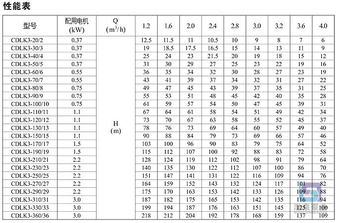 產品介紹 一、概述 CDLK3-60/6浸入式多級離心泵為安裝標準電機 為滿足水槽或容器的安裝深度,可安裝空腔體來改變泵本身的長度,不同的級數長度見尺寸和重量表和可供產品范圍表。 二、應用范圍 CDLK3-60/6液下式多級離心泵用于輸送機床冷卻液、潤滑液、冷凝水輸送、工業清洗設備和其它適合浸入式泵使用的場合,適合于不同溫度、流量和壓力范圍,CDLK適用于無腐蝕性液體,CDLKF適于輕度腐蝕性液體。 具體用于電火花、車床、磨床、加工中心、冷卻裝置、工業清洗設備、過濾系統等。 三、電機 電機為全封閉,風冷式二極標準電機。 防護等級:IP55 絕緣等級:F 標準電壓:50HZ:1*220-230/240V 3*200/346V 3*220-240/380-415V 3*220-225/380-440V 其他電壓的電機按要求可供。 單相電壓從0.37-2.2kw可供。 四、運行條件 適用于稀薄、干凈、不含固體顆粒和纖維的非易爆液體,可輸送水及冷卻用水溶液和切割潤滑液。 液體溫度:常溫型-15℃~+70℃ 熱水型+70℃~+120℃ ![]() 因產品生產批次、型號不同,產品圖片及安裝尺寸僅供參考,詳情可聯系我們的銷售人員了解更多CDLK3-60/6浸入式多級離心泵相關信息!