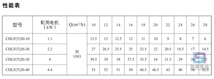 產(chǎn)品介紹 CHLF20-10LSWSC輕型臥式多級(jí)離心泵配加長(zhǎng)軸電機(jī)采用了免修機(jī)械密封,緊湊式結(jié)構(gòu)使泵尺寸很小,軸向入口和徑向出口。輕型段式多級(jí)離心泵的過流部件均采用不銹鋼材料(304或316)制成,輕型不銹鋼多級(jí)離心泵具有低噪音,耐輕腐蝕,外形美觀、體積小、重量輕、使用壽命長(zhǎng)等特點(diǎn),不同材質(zhì)的硬質(zhì)合金密封,保證了不同介質(zhì)輸送均無泄漏;噪音低:兩個(gè)低噪音軸承下的水泵,運(yùn)轉(zhuǎn)平穩(wěn),除電機(jī)微弱聲響,基本無噪聲;故障率低:結(jié)構(gòu)簡(jiǎn)單合理,整機(jī)無故障工作時(shí)間大大提高。采用國(guó)內(nèi)優(yōu)秀水力模型優(yōu)化設(shè)計(jì)而成,是理想的新一代高效節(jié)能輕型臥式多級(jí)離心泵。采用了免修機(jī)械密封。輕型段式多級(jí)離心泵的過流部件均采用不銹鋼材料(304或316)制成,具有低噪音,耐輕腐蝕,外形美觀、體積小、重量輕、使用壽命長(zhǎng)等特點(diǎn)。 二、應(yīng)用范圍: 主要用于家庭型中央空調(diào)循環(huán)及工業(yè)上液體的傳輸。如脫礦物質(zhì)水、軟水、凈化系統(tǒng)、輕油等的循環(huán)和增壓。 1)小型中央空調(diào)循環(huán) 2)冷卻系統(tǒng) 3)工業(yè)清洗 4)水處理(水的凈化) 5)水產(chǎn)養(yǎng)殖 6)施肥/計(jì)量系統(tǒng) 7)環(huán)境應(yīng)用 三、工作條件: 稀薄、干凈、不凝、不爆炸、不含固體顆粒或纖維的液體。 液體溫度: 常溫型-15℃至+70℃ 熱水型+70℃至+110℃ 最大環(huán)境溫度:+40℃ 最大運(yùn)作壓力:10巴 最大進(jìn)口壓力受最大運(yùn)作壓力限制 介質(zhì)酸堿性:PH4~9 四、輸送液體: 1、稀薄、清潔、不含固體顆?;蚶w維的非易燃易爆液體。 2、泵可以輸送諸如礦泉水、軟化水、純水、清油和其它輕化工介質(zhì)。 3、當(dāng)輸送液體的密度或粘度大于水,如需要,必須配用大功率電機(jī)。 4、泵是否適用于某一特定液體由多種因素決定,其中最重要的是氯含量、PH值、溫度和溶濟(jì)、油的含量等。 五、曲線條件: 下述條件適用于后面所示性能曲線。 1、所有曲線都基于電機(jī)在恒速2900rpm的測(cè)量值。 2、曲線容差符合ISO9906,附錄A。 3、測(cè)試采用20℃不含空氣的水,運(yùn)動(dòng)粘度為1mm2/s。 4、泵的使用參照加粗曲線的性能范圍,以防流量過小產(chǎn)生過熱和流量過大使電機(jī)過載等。 六、電機(jī): 電機(jī)為全封閉,風(fēng)冷式二極電機(jī) 防護(hù)等級(jí):IP55 絕緣等級(jí):F 標(biāo)準(zhǔn)電壓, 50Hz: 1×220-240V 3×220-240V 380-415V ![]() 因產(chǎn)品生產(chǎn)批次、型號(hào)不同,產(chǎn)品圖片及安裝尺寸僅供參考,詳情可聯(lián)系我們的銷售人員了解更多CHLF20-10LSWSC輕型臥式多級(jí)離心泵相關(guān)信息!