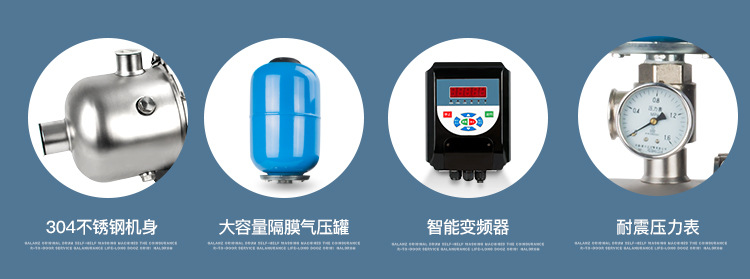 酒店家用變頻恒壓泵可視系統壓力變化,由壓力感應器,依感知信號與設定壓力值比較計算,輸出信號給專用變頻器。變頻器再根據傳感器的信號變化,而改變頻率(0-50Hz),馬達泵浦隨頻率之變化而改變馬達轉速以達恒壓功能。