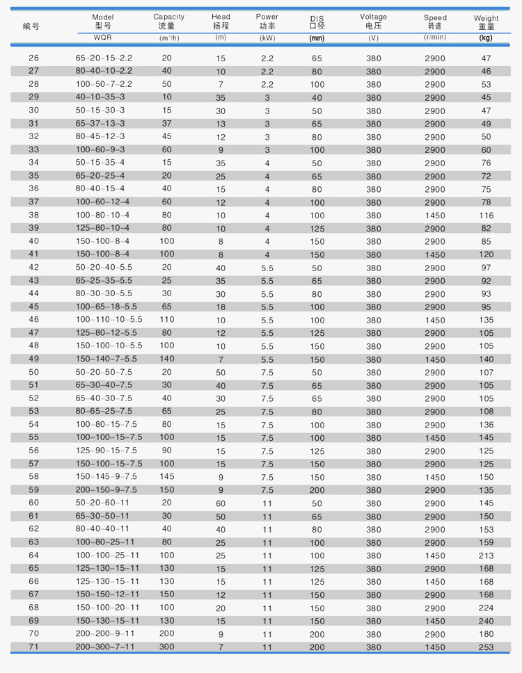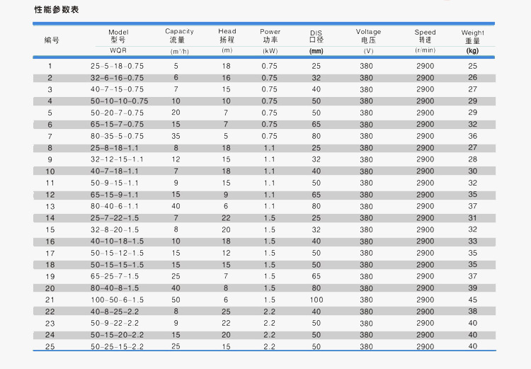 | 熱水潛水泵選型40WQR7-15-0.75kw耐高溫污水泵 | ||||||||||||||||