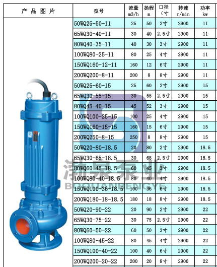| WQ高揚程潛水排污泵選用二級電機揚程可達(dá)100米 | ||||||||||||||||