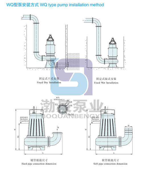 QW(WQ)型無堵塞潛水排污泵是在引進國外先進技術(shù)的基礎(chǔ)上,結(jié)合國內(nèi)水泵的使用特點而研制成功的新一代泵類產(chǎn)品,具有節(jié)能效果顯著、防纏繞、無堵塞、自動安裝和自動控制等特點。在排送固體顆粒和長纖維垃圾方面,具有獨特效果。 WQ潛水排污泵本公司最新生產(chǎn)出11KW-22KW,二級2900r/min電機座,口徑DN50-200mm,揚程最高可達(dá)100米,填補了國內(nèi)空白,具有高效能,運行穩(wěn)定,質(zhì)量可靠. ![]() 該系列高揚程潛水排污泵采用獨特葉輪結(jié)構(gòu)和新型機械密封,能有效地輸送含有固體物和長纖維。葉輪與傳統(tǒng)葉輪相比,該泵葉輪采用單流道或雙流道形式,它類似于一截面大小相同的彎管,具有非常好的過流性,配以合理的蝸室,使得該泵具有效率高、葉輪經(jīng)動靜平衡試驗,使泵在運行中無振動。 產(chǎn)品特點: 1.采用獨特的單片或雙葉片葉輪結(jié)構(gòu),大大提高了污物通過能力,能有效的通過泵口徑的5倍纖維物質(zhì)與直徑為泵口徑約50%的固體顆粒。 2.機械密封采用新型硬質(zhì)耐腐的鈦化鎢材料,可使泵安全連續(xù)運行8000小時以上。 3.整體結(jié)構(gòu)緊湊、體積小、噪聲小、節(jié)能效果顯著,檢修方便,無需建泵房,潛入水中即可工作,大大減少工程造價。 4.該泵密封油室內(nèi)設(shè)置有高精度抗干擾漏水檢測傳感器,定子繞組內(nèi)預(yù)埋了熱敏元件,對水泵電機自動保護。 5.可根據(jù)用戶需要配備全自動控制柜,對泵的漏水、漏電過載及超溫等進行自動保護,提高了產(chǎn)品的安全性與可靠性 6.浮球開關(guān)可以根據(jù)所需液位變化,自動控制泵的起動與停止,不需專人看管,使用極為方便。 7.QW(WQ)潛水排污泵系列可根據(jù)用戶需要配備雙導(dǎo)軌自動耦合安裝系統(tǒng),它給安裝、維修帶來更大方便,人可不必為此而進入污水坑。 8.能夠在全揚程內(nèi)使用,而保證電機不會過載。 9.有兩種不同的安裝方式,固定式自動耦合安裝系統(tǒng)、移動式自由安裝系統(tǒng)。 ![]()