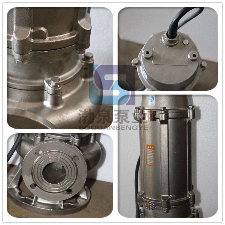 不銹鋼耐腐蝕排污泵QWP50-20-15-1.5特點 01,此款 排污泵我司綜合國內外先進技術,采用不銹鋼設計的排水結構,因為一般污水泵都有一定的腐蝕性和磨損,在設計上采用了耐磨,耐腐蝕的不銹鋼作為主要材料,它具有普通排污泵的全部優點,同時增加了耐磨耐腐蝕的特點,擴大了適用范圍。02,具有無堵塞,防纏繞,結構緊密,體積小,耐磨,耐腐蝕,體積小,適用壽命長,抽送清水不污染介質,稠油固體顆粒,短纖維,漿料等更為理想。除了不污染介質外,還耐磨耐腐蝕,是化工,食品行業的理想產品。 產品全部采用不銹鋼精密鑄件加工而成,壁厚大于或者等于3毫米,除了能夠生產304的以外,還可以生產316L不銹鋼等。 04,我司綜合國內外先進技術,采用不銹鋼設計的排水結構,因為一般污水泵都有一定的腐蝕性和磨損,在設計上采用了耐磨,耐腐蝕的不銹鋼作為主要材料,它具有普通排污泵的全部優點,同時增加了耐磨耐腐蝕的特點,擴大了適用范圍。 05,具有無堵塞,防纏繞,結構緊密,體積小,耐磨,耐腐蝕,體積小,適用壽命長,抽送清水不污染介質,稠油固體顆粒,短纖維,漿料等更為理想。除了不污染介質外,還耐磨耐腐蝕,是化工,食品行業的理想產品。 06,本公司有專業的精密鑄造車間,特殊材質可以定做。如316,316L,硬質合金等。 07,不銹鋼自身有耐高溫性能,加上我公司的技術,在100度一下的溫度可以定做。