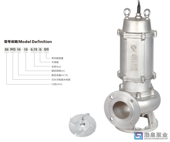 WQ(D)-SQG不銹鋼精密鑄造切割式污水泵具有排污通過(guò)能力特別強(qiáng),帶切割性能好,能將污水中的長(zhǎng)纖維、塑料、紙、帶、布條、稻草、繩子等雜質(zhì)切碎后排出。