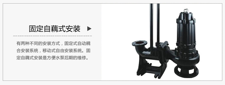 7、雙導(dǎo)軌自動耦合安裝系統(tǒng),給泵的安裝、維修帶來了極大的方便,人可不必為此而進出污水坑。