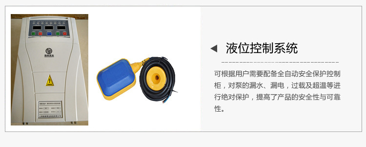 6、可根據(jù)用戶需要配備全自動保護控制柜,對泵的漏水、漏電、過載及超溫等進行監(jiān)控,保證泵運行。