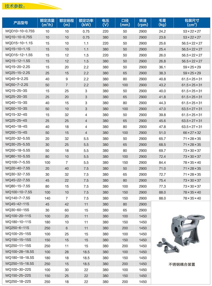 1.國(guó)標(biāo)法蘭WQ(D)-S不銹鋼精密鑄造污水污物潛水電泵采用不銹鋼精密鑄造外殼,具有耐腐蝕,環(huán)保型,揚(yáng)程高,流量大等特點(diǎn)。